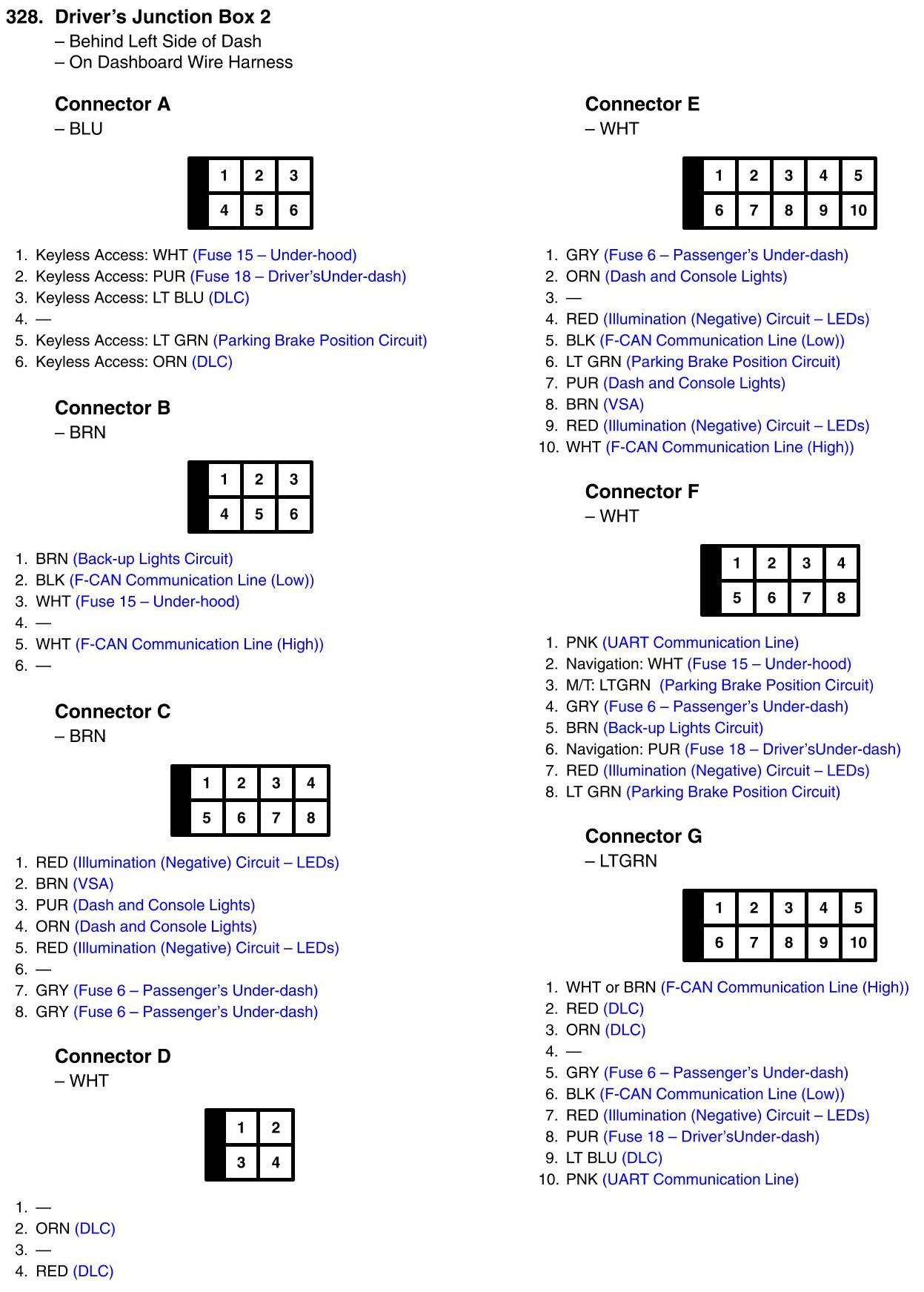 Driver's Junction Box 2 Connector View