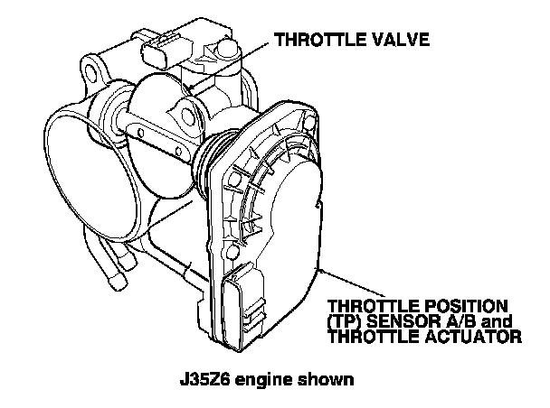 The electronic throttle control system consists of the throttle actuator, throttle position (TP) sensor A/B, accelerator pedal position (APP) sensor A/B, the electronic throttle control system (ETCS) control relay, and the PCM.