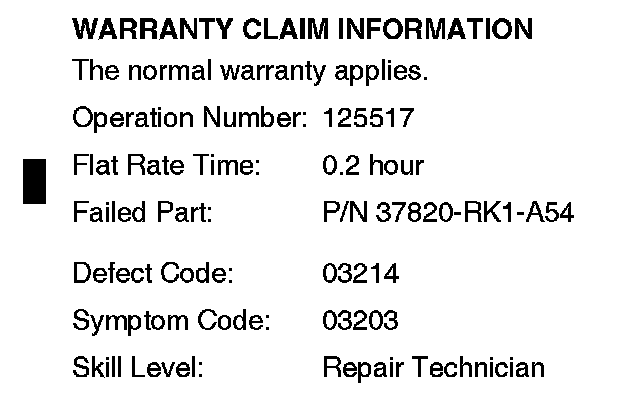 Update the PGM-FI software with the HDS. Refer to Service Bulletin 01-026, Updating Control Units/Modules.