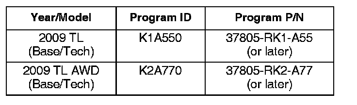 The updated PGM-FI software program IDs and P/Ns are shown below. If the HDS is loaded with the latest software, and it displays No Update Needed during the update, the software for this service bulletin is already installed.