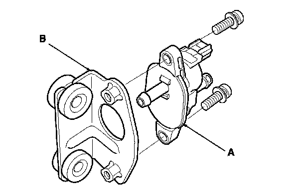 3. Remove the EVAP canister purge valve (A) from the bracket (B).