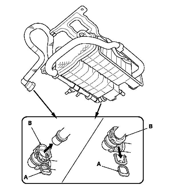 NOTE: The new fuel vapor hose has a ring pull (A) at the connector (B). When you connect the connector and confirm that the connection is secure, remove the ring pull by pulling it down.