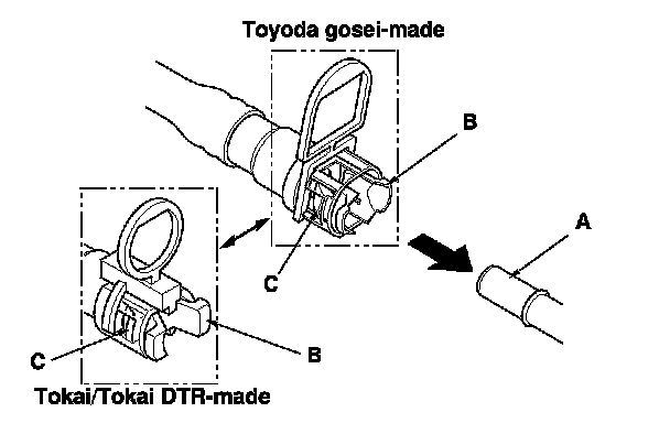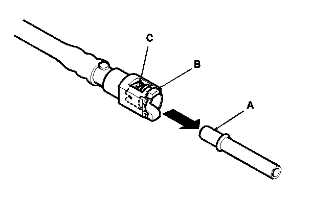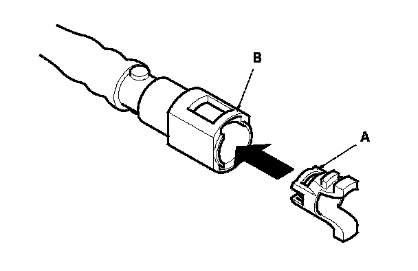 2. Insert a new retainer (A) into the connector (B) if the retainer is damaged, or after: