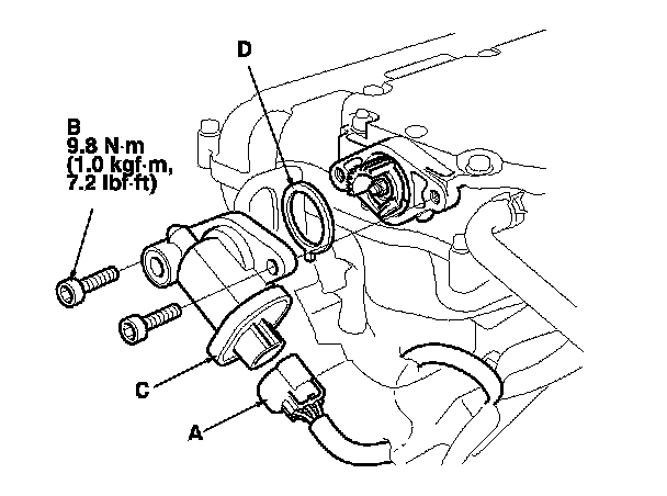 3. Install the parts in the reverse order of removal with a new O-ring (D).