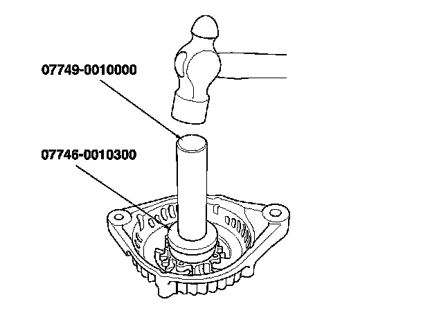12. Install a new front bearing in the drive-end housing with a hammer, the driver handle, 15 x 135L, and the attachment, 42 x 47 mm.