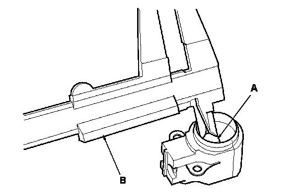 19. Push the brushes (A) in, then insert a pin or drill bit (B) (about 1.6 mm (0.06 in.) diameter) to hold them there.