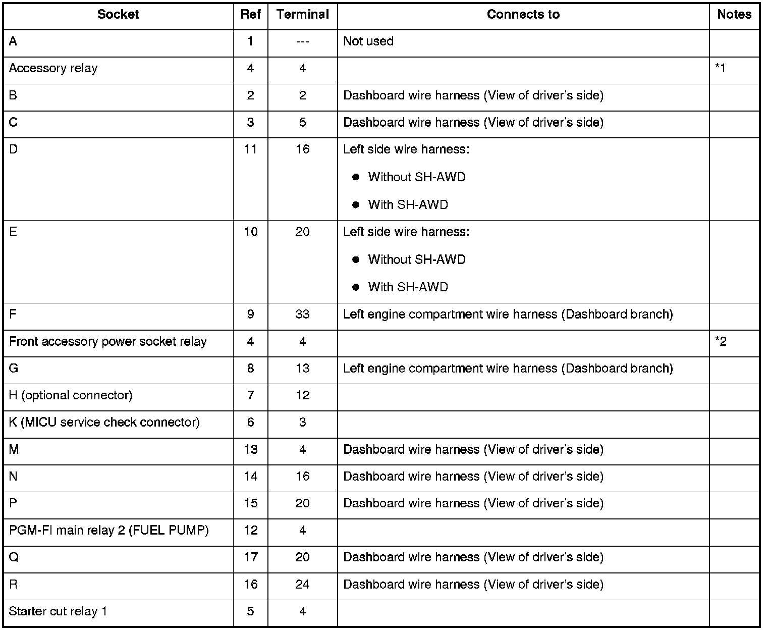 Driver's Under-dash Fuse/Relay Box Connector Locations
