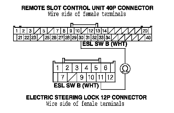 36. Check for continuity between electric steering lock 12P connector terminal No. 11 and remote slot control unit 40P connector terminal No. 30.