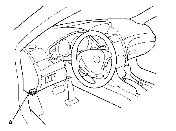 1. With the ignition switch in LOCK (0) or with the vehicle ignition in the OFF mode, connect the HDS to the data link connector (DLC) (A) located under the driver's side of the dashboard.