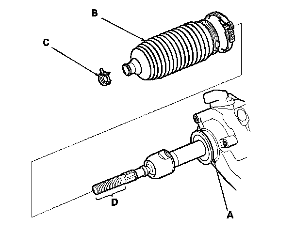 8. After installing the boots, wipe the grease off the threaded section (D) of the rack end.