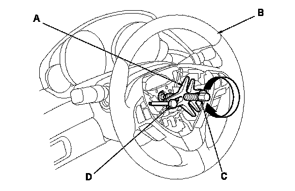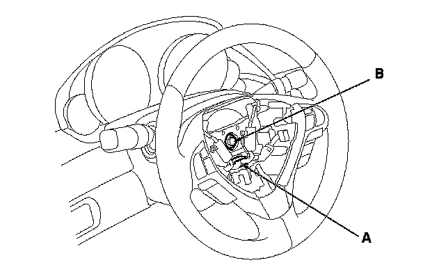4. Loosen the steering wheel bolt (B).