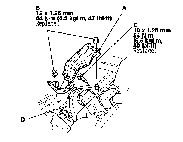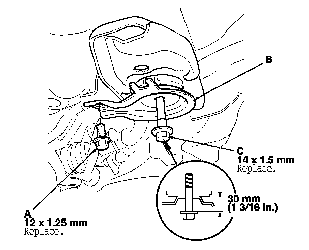 NOTE: Use new nuts (C) and a front engine mount bolt during reassembly.