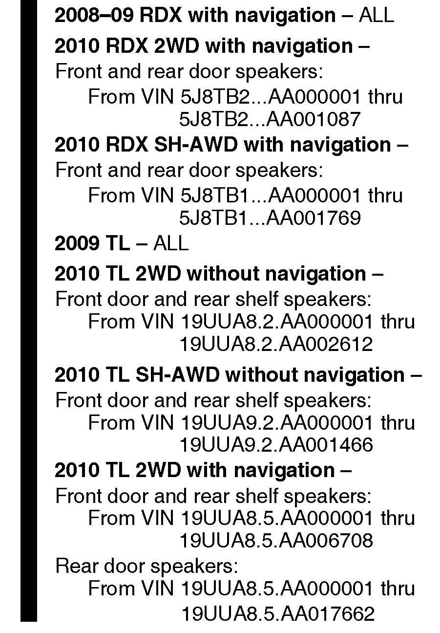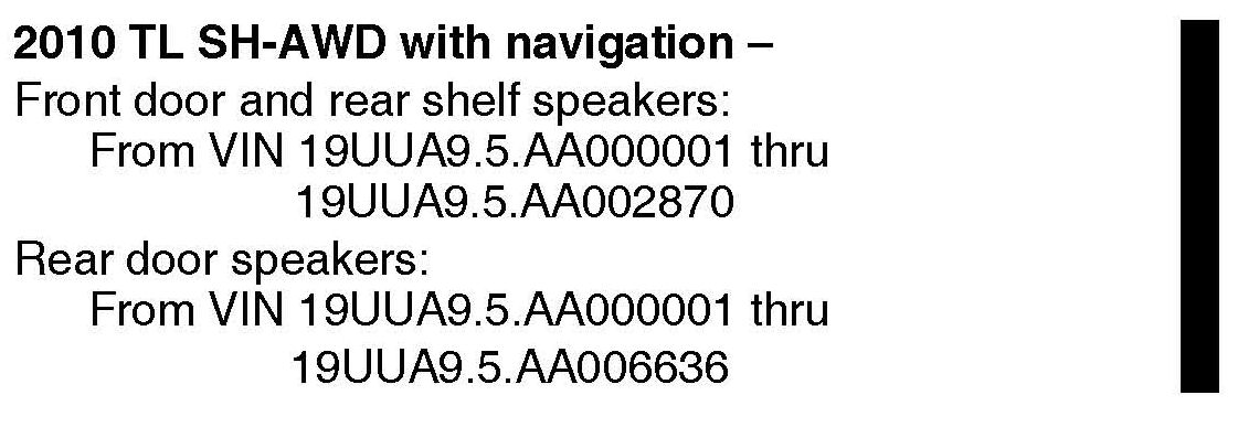 ^ Under VEHICLES AFFECTED, the VIN range for the 2010 TL ALL with navigation was changed.