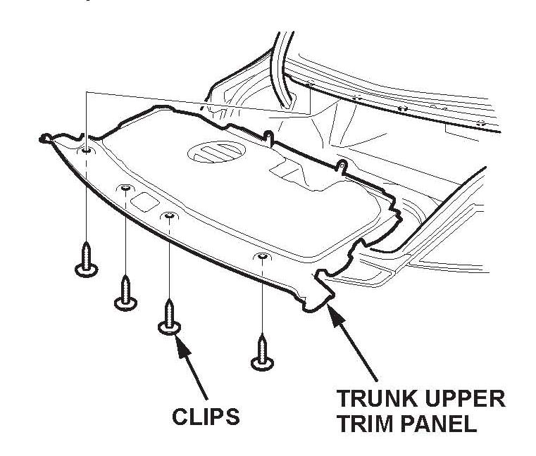 2. Lower the trunk upper trim panel to detach the clips, then remove the panel from the trunk compartment.