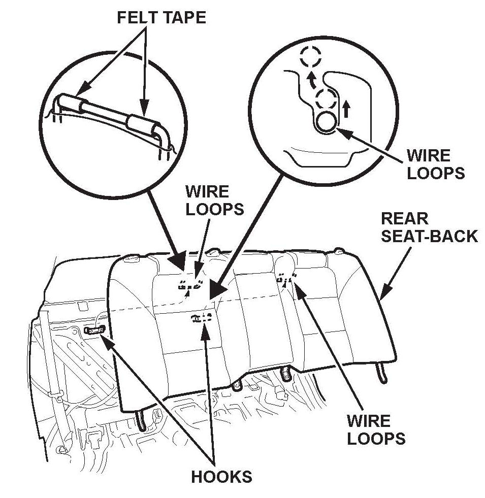 ^ Push on the seat-back while lifting it up to release the wire loops from the hooks on the body.