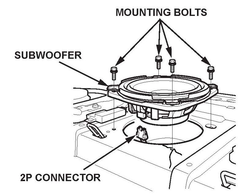 12. Disconnect the 2P connector, and remove the subwoofer.