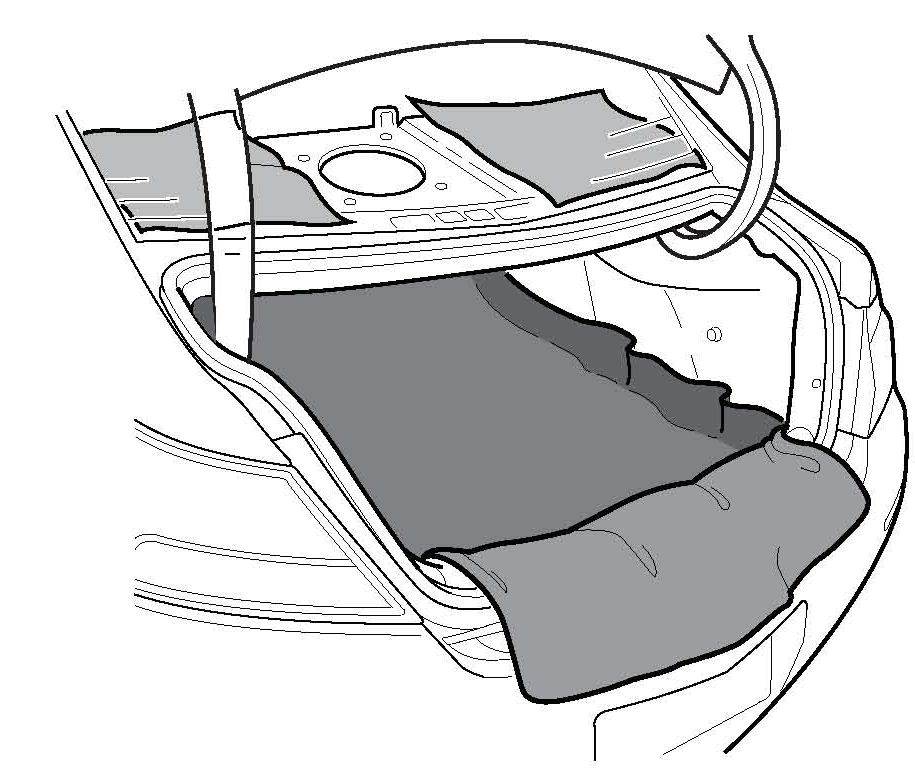 13. Lay a drop cloth down inside the trunk area, and lay shop towels over the top side of the rear parcel shelf next to the rear speakers and seat belt retractors to protect them from metal debris.