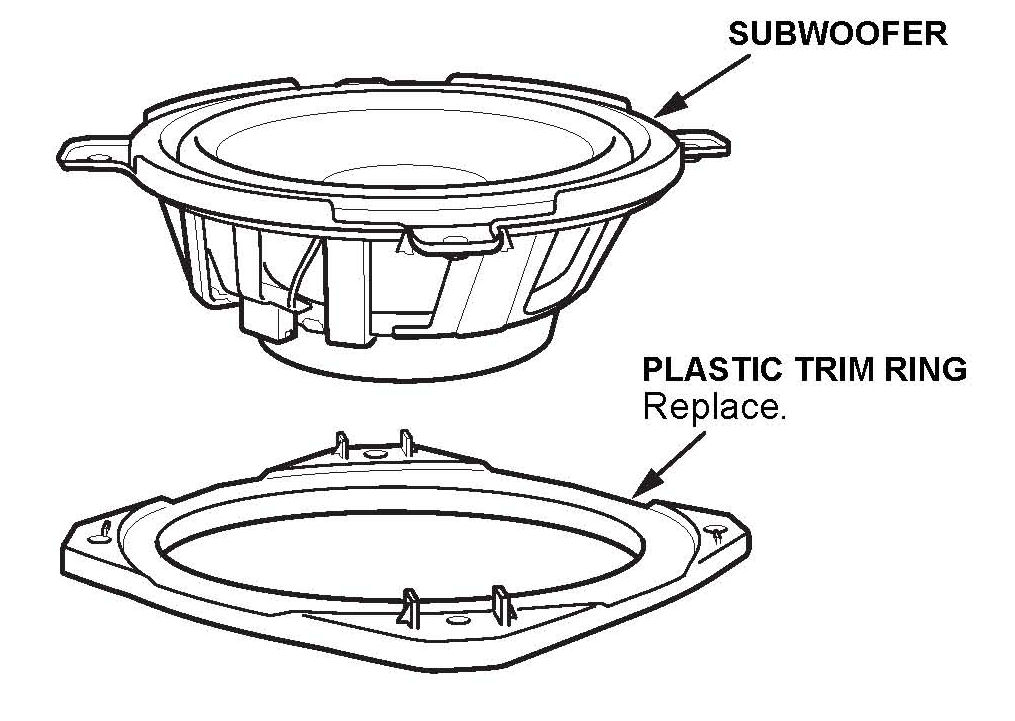 30. Separate the plastic trim ring from the subwoofer and install a new one from the kit.
