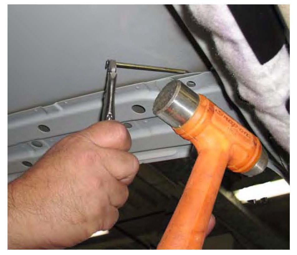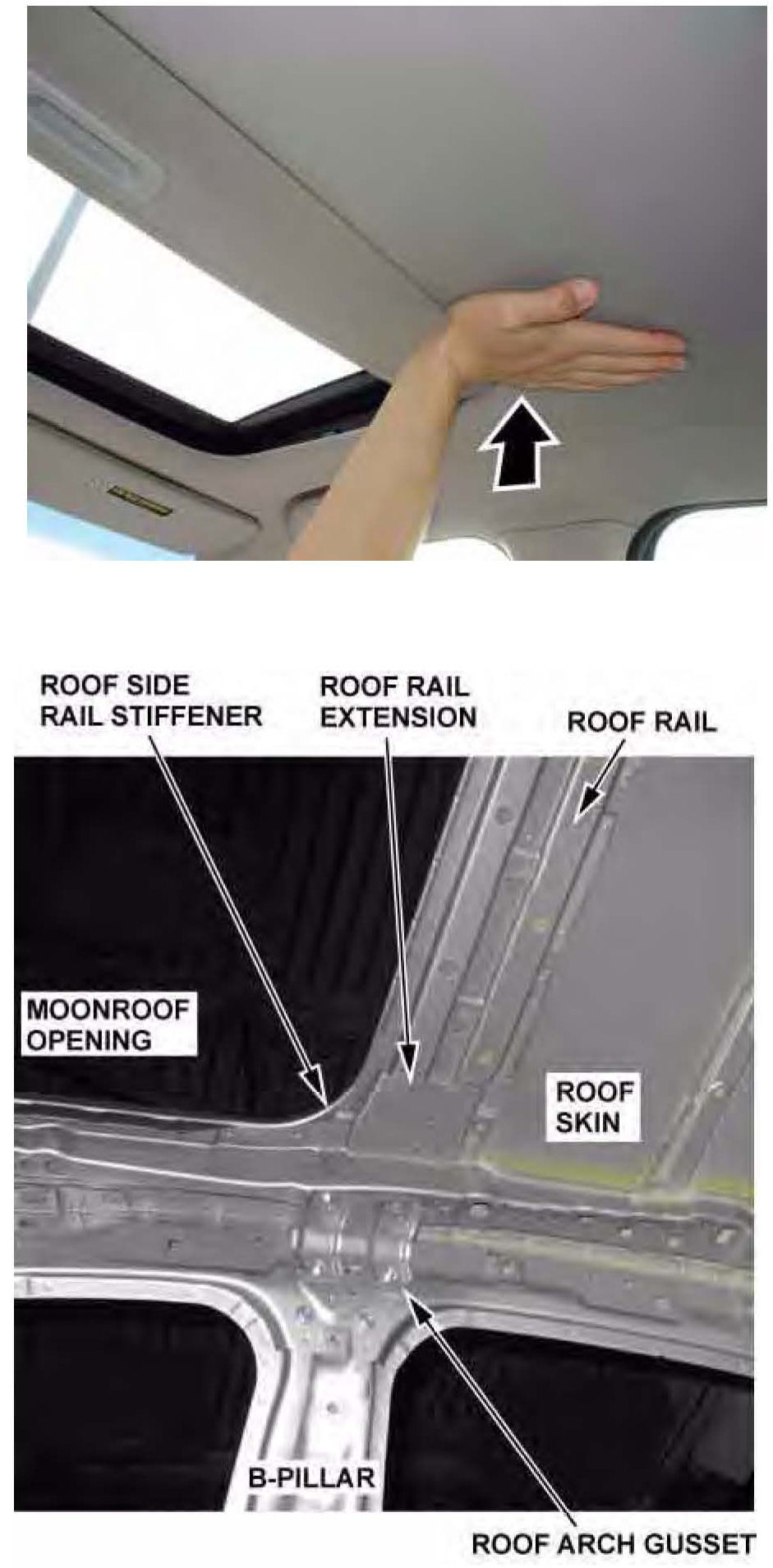 4. Continue test-driving, and apply upward pressure to the headliner along the roof rail panel and/or the roof side rail stiffener.