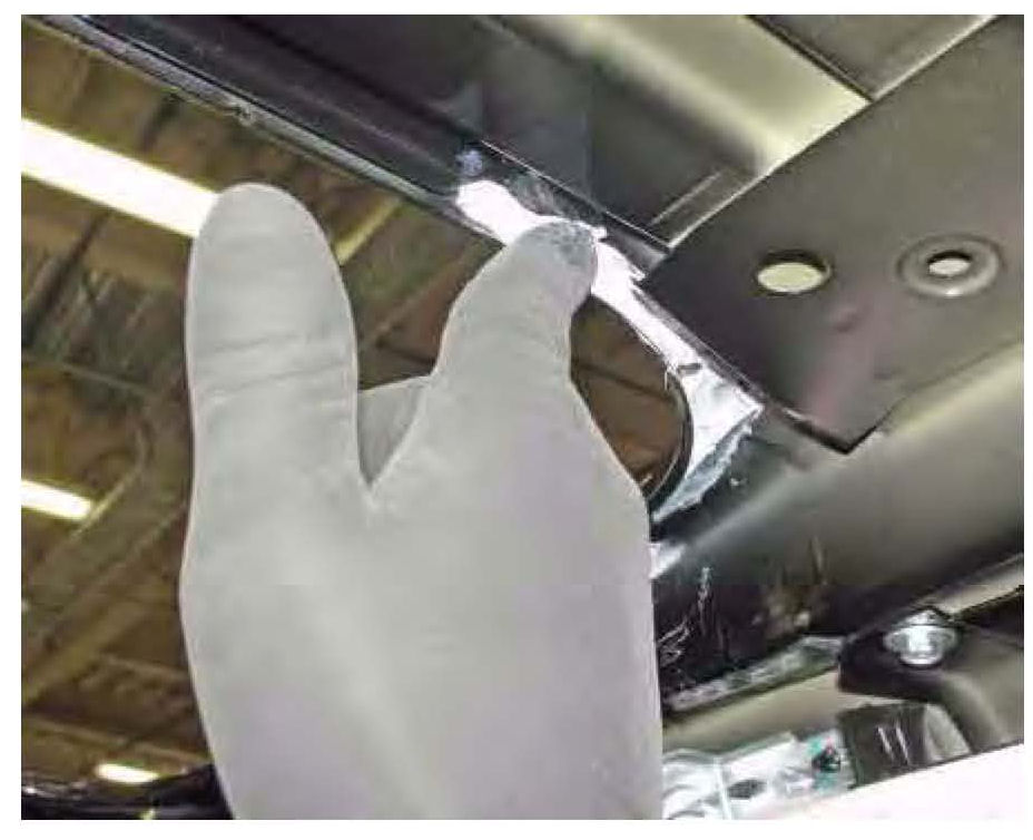 6. Apply additional sealant between the roof side rail stiffener and the roof skin to fill from the other side of the cavity.