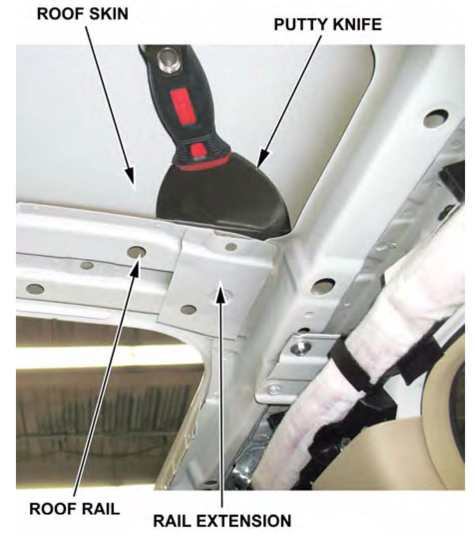 This repair addresses the noise located between the roof side rail stiffener and the roof skin.