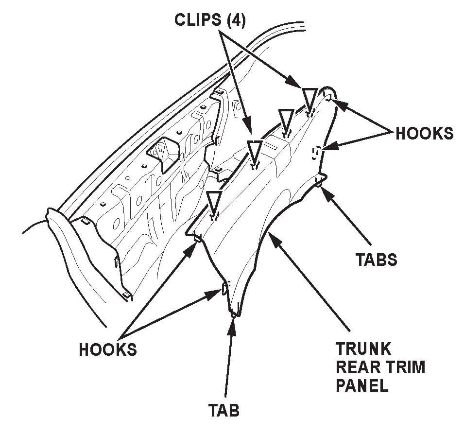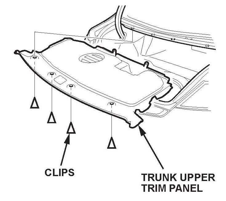 3. Detach the clips, and release the hooks and the tabs by pulling upon the trunk rear trim panel, then remove the panel.