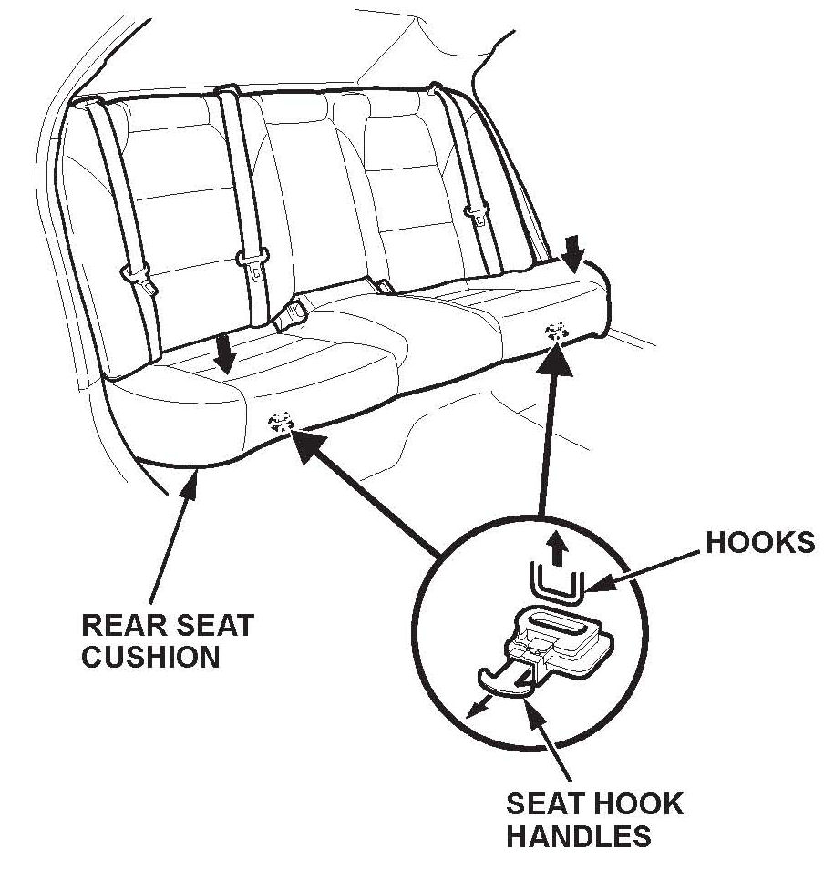 7. While pushing down on the rear seat cushion, pull the seat hook handles to release the hooks.