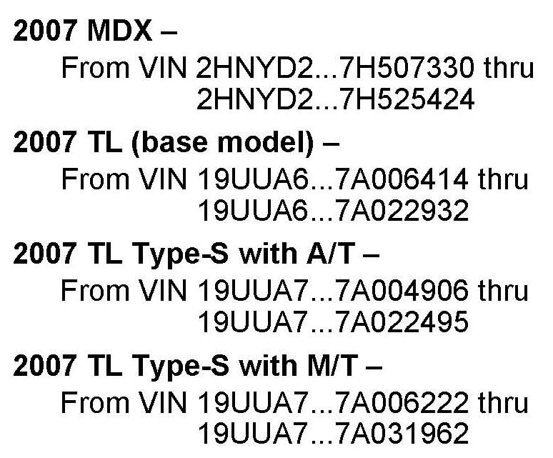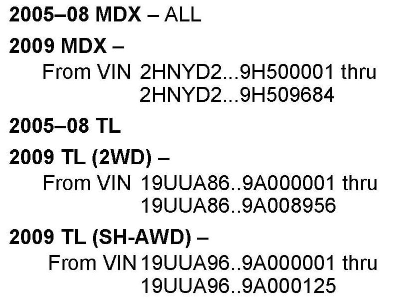 See VEHICLES AFFECTED