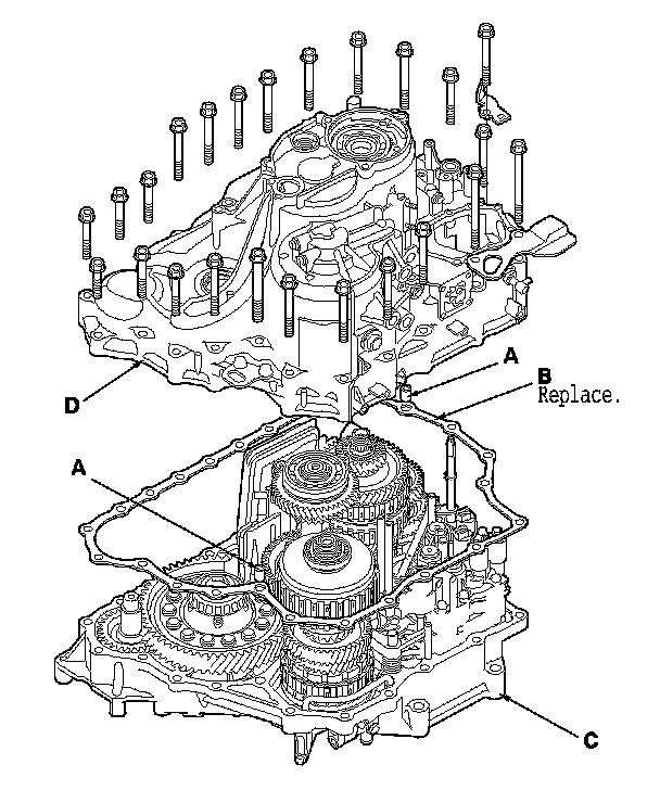 67. Install a new O-ring (C) on the output shaft (countershaft) speed sensor (D), and install the output shaft (countershaft) speed sensor.