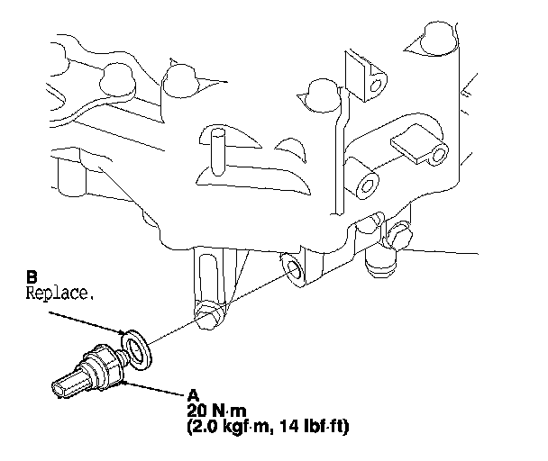 68. Install the 4th clutch transmission fluid pressure switch (A) with a new sealing washer (B). Tighten the switch by gripping the metal part, not the plastic part.
