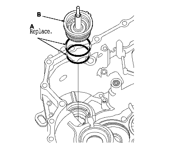 Install new O-rings (A) on the ATF feed pipe cap (B).