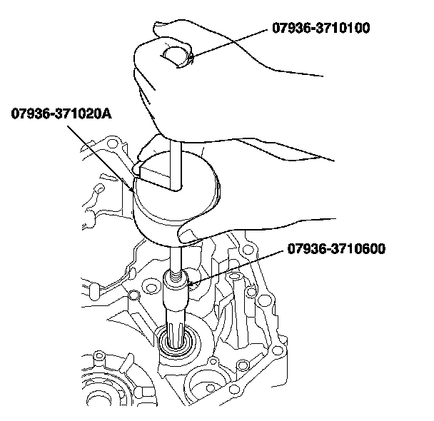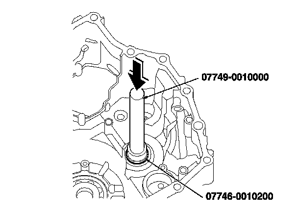 2. Install a new bearing until it bottoms in the transmission housing using the driver handle and the 37 x 40 mm attachment.