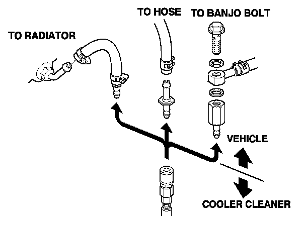 4. Select the appropriate pair of fittings, and attach them to the radiator, to the hoses, or to the banjo bolts for flow through the ATF cooler cleaner.