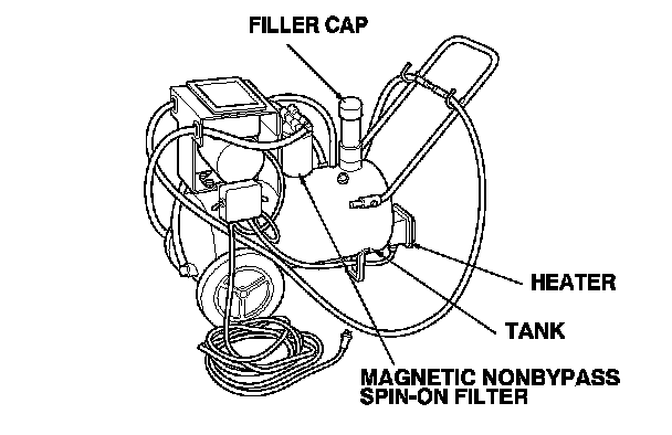 NOTE: If the red indicator above the HEAT toggle switch comes on, the fluid level in the tank is too low for the tank heater to work (see step 1 of this procedure).