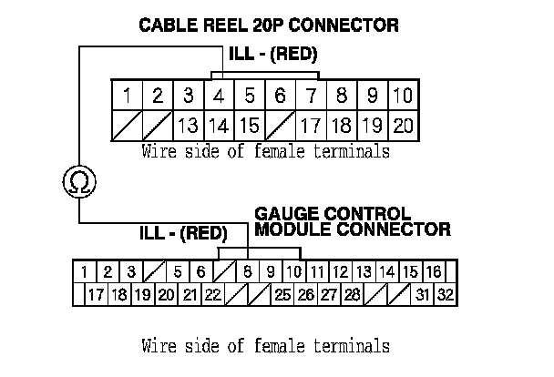 NO - Repair open in the wire between cable reel 20P connector terminal No. 4 and gauge control module.