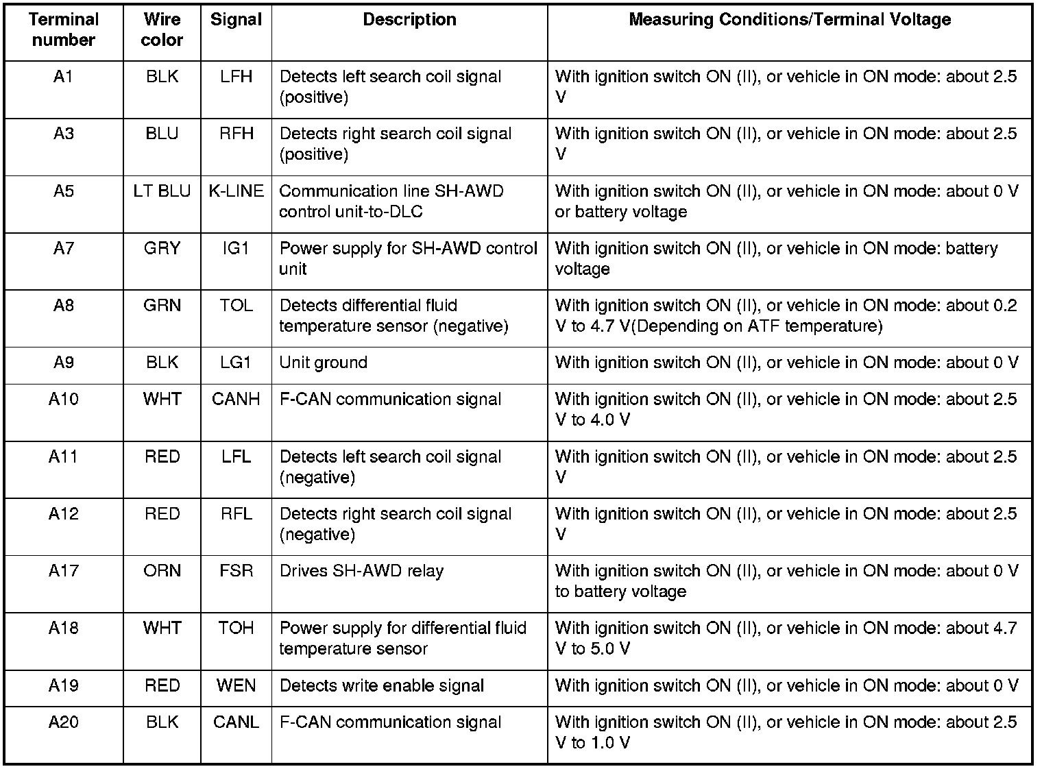 SH-AWD Control Unit Inputs and Outputs (con't)