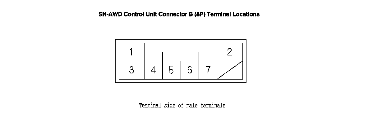 The SH-AWD control unit terminal voltages and the measuring conditions for the SH-AWD inputs and outputs test are done with the SH-AWD connectors connected.