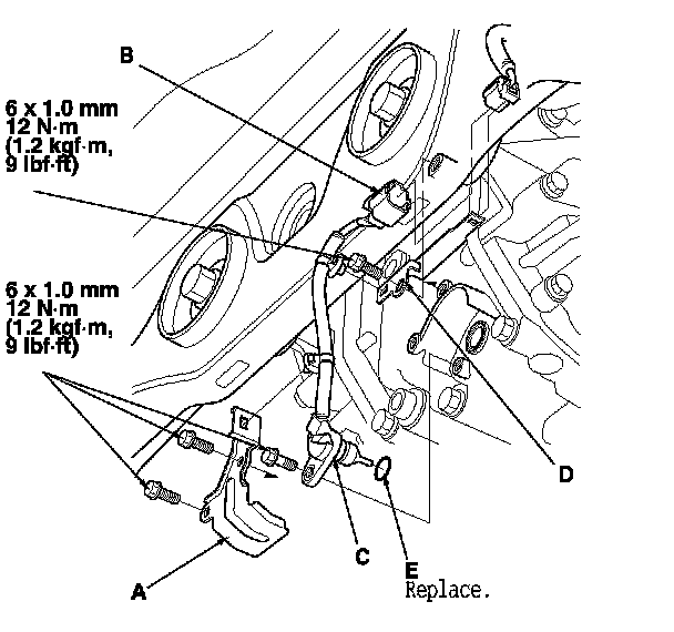 4. Install the rear differential fluid temperature sensor with a new O-ring (E) in the reverse order of removal.