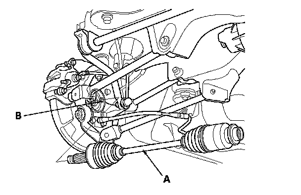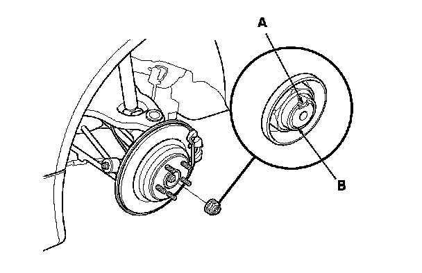 NOTE: Be careful not to damage the wheel speed sensor (B).