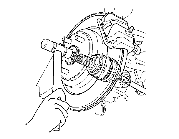 8. While holding the driveshaft by hand, separate the driveshaft outboard joint from the rear hub using a plastic hammer.