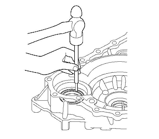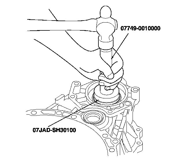 2. Install a new oil seal flush to the torque converter housing using the driver handle and the 65 mm attachment.