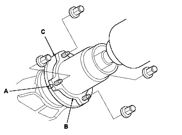 8. Make a reference mark (A) across the No. 1 propeller shaft (B) and the transfer companion flange (C).