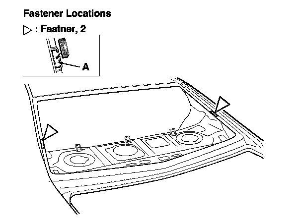 13. Attach the fasteners with adhesive tape to the rear window opening flange (A) of the body on both sides.