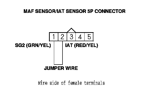 9. Remove the jumper wire from the MAF sensor/IAT sensor 5P connector.