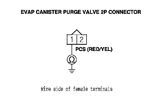 22. At the valve side, measure the resistance between EVAP canister purge valve 2P connector terminals No. 1 and No. 2.