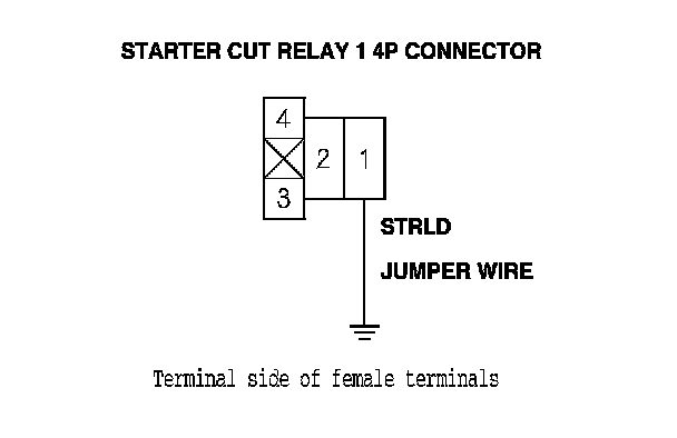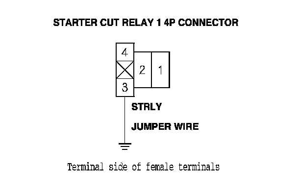 12. Connect starter cut relay 1 4P connector terminal No. 1 to body ground with a jumper wire.