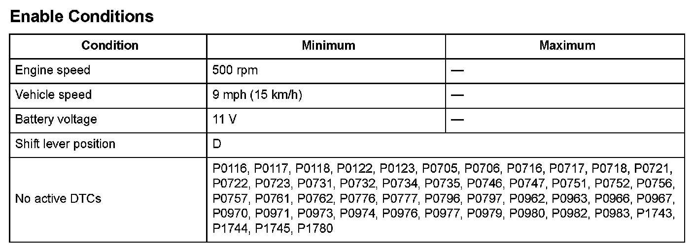 Start the engine, shift to D, and drive the vehicle at a speed of 9 mph (15 km/h) or more for at least 12 seconds in 3rd gear.