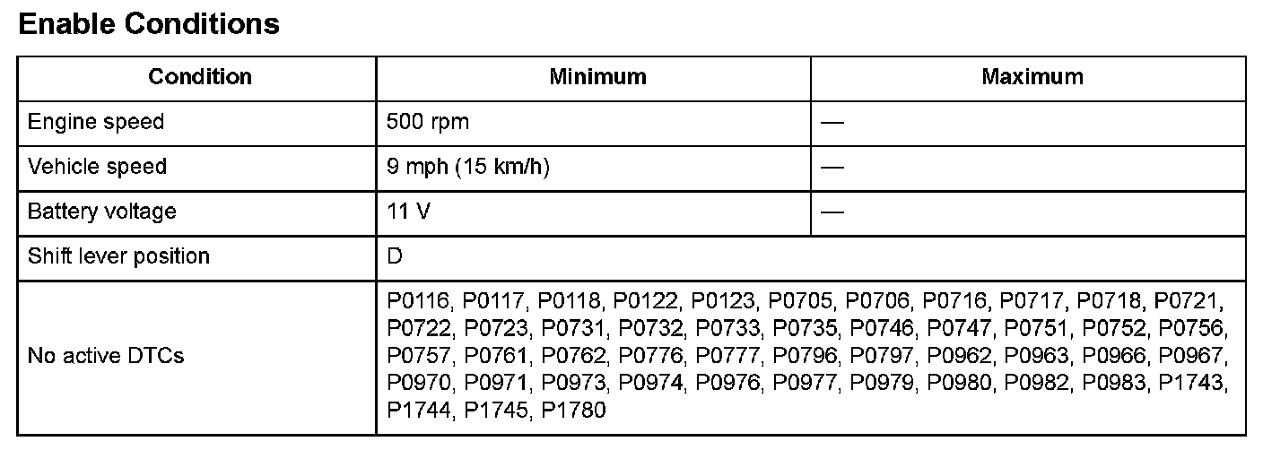 Start the engine, shift to D, and drive the vehicle at a speed of 9 mph (15 km/h) or more for at least 12 seconds in 4th gear.