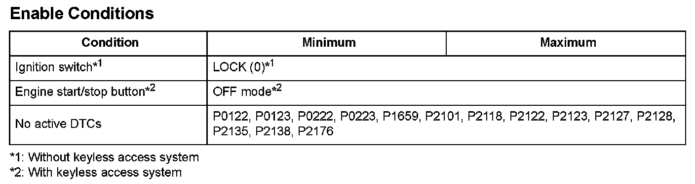 Conditions for setting the DTC