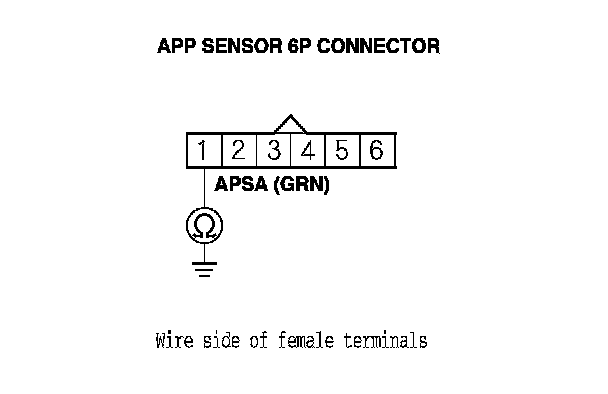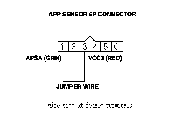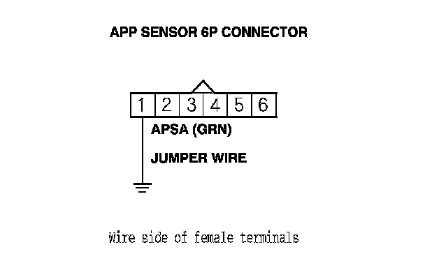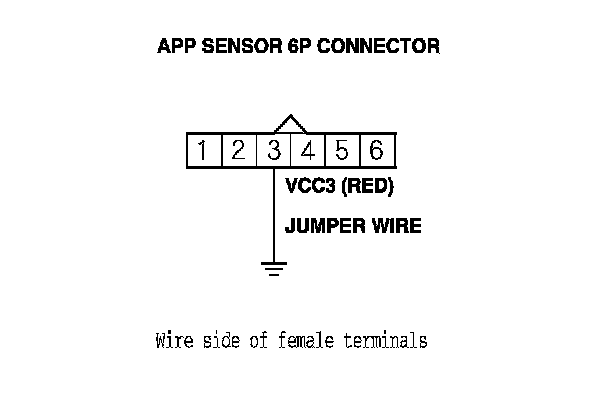 11. Connect APP sensor 6P connector terminal No. 1 to body ground with a jumper wire.